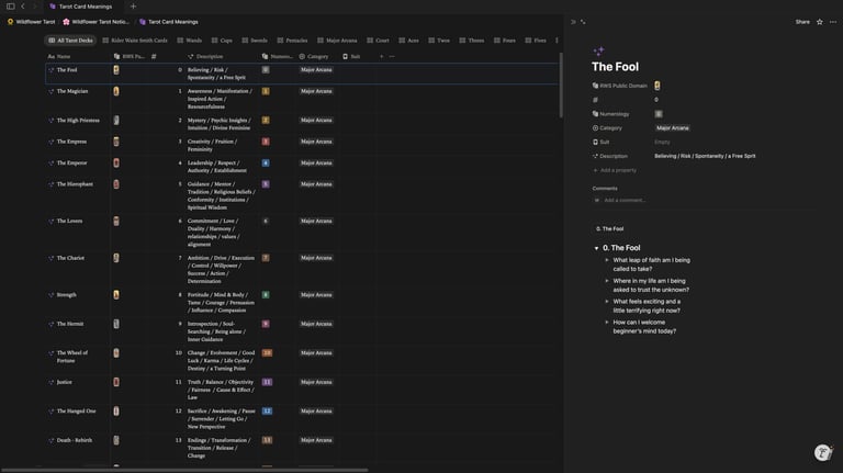 Your Wildflower Tarot Journal is an autodidactic learning system designed to help you study the cards, track your readings, and develop your own intuitive understanding over time.